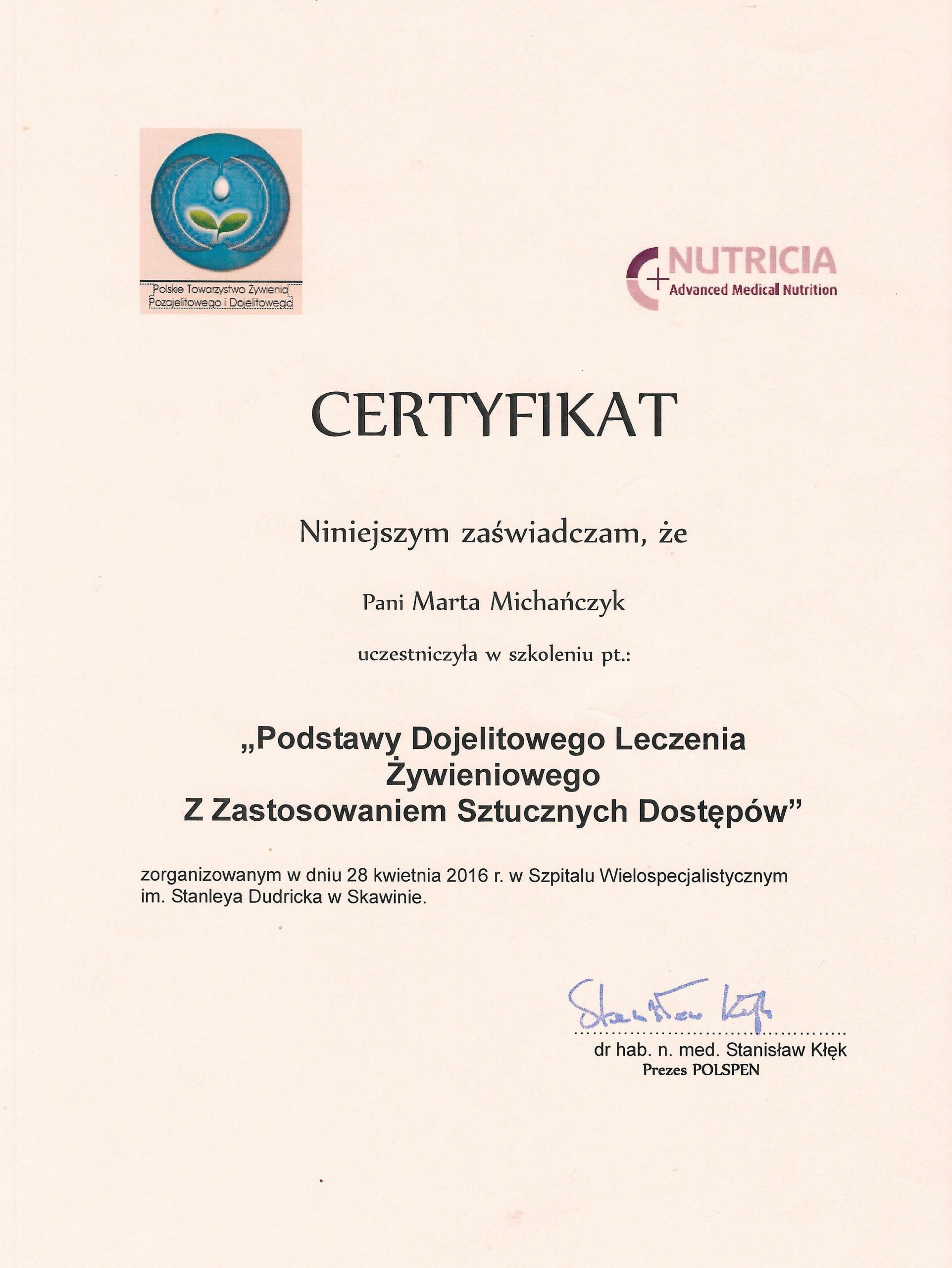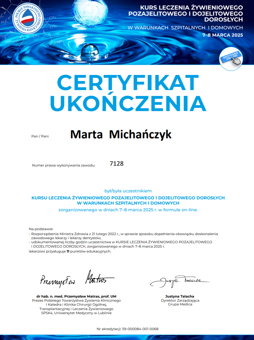 - Poradnia Żywieniowa Centrum Medyczne Gizińscy – w ramach żywienia dojelitowego w warunkach domowych.