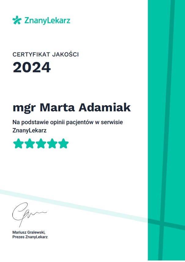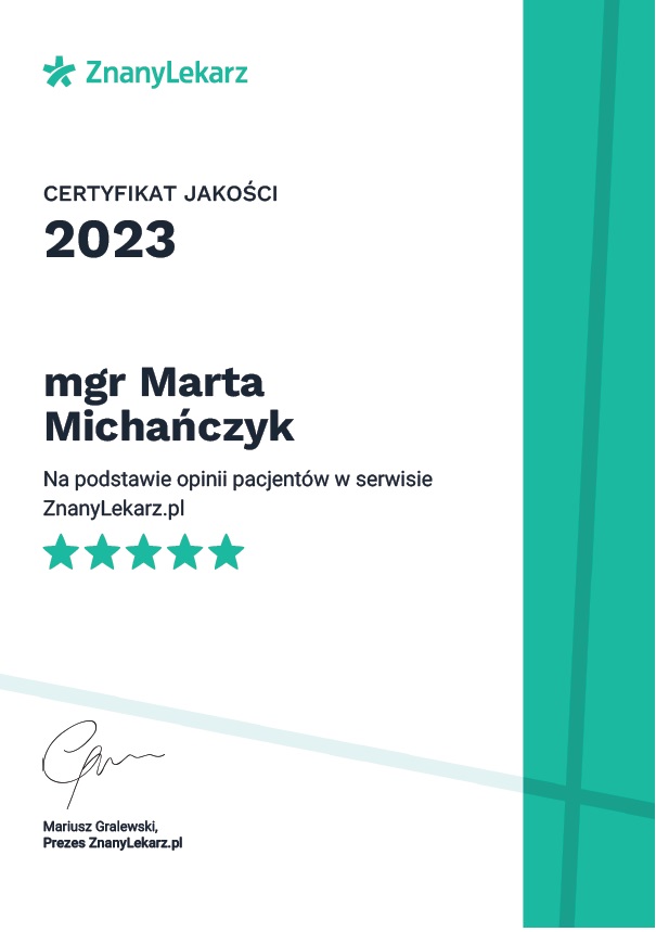 Dalsze lata to już praca bezpośrednio z pacjentem, często z jego bliskimi biorąc pod uwagę tło „domowe”, styl życia i stan zdrowia. Bardzo lubię pracować z parami, bo uważam, że wspólnie można osiągnąć więcej, dlatego pary zawsze mają preferencyjne warunki cenowe w moim gabinecie.